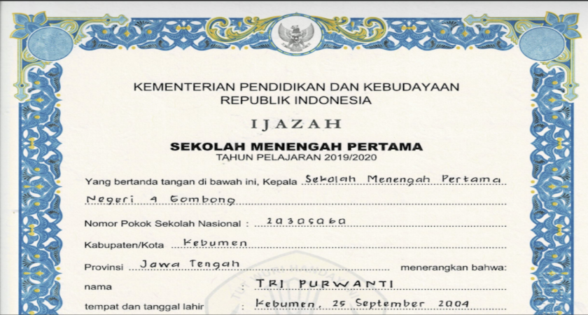 Selamat kepada peserta didik Kelas 9 SMP Negeri 4 Gombong Tahun Pelajaran 2020/2021 yang telah lulus dan menyelesaikan belajarmya. Salah satu bukti kelulusan adalah memiliki Ijazah. Ijazah ini sangat penting untuk menentukan rencana atau pun tujuan selanjutnya setelah lulus dari SMP Negeri 4 Gombong, apakah mau melajutkan sekolah ke jenjang berikutnya atau mau bekerja?
